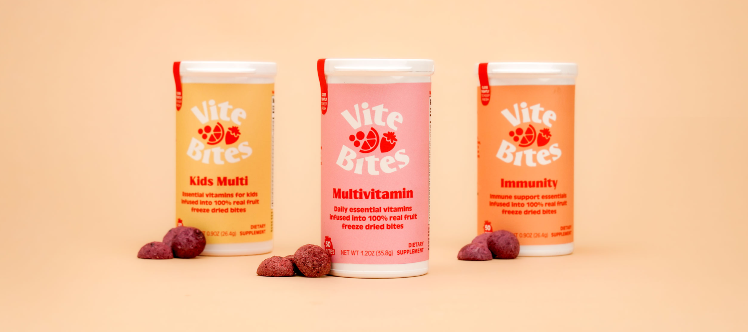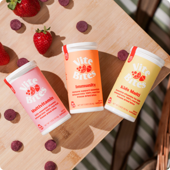 ViteBites 100% Real Fruit, freeze dried vitamin bites deliver wellness you can taste, without the hard to pronounce ingredients.